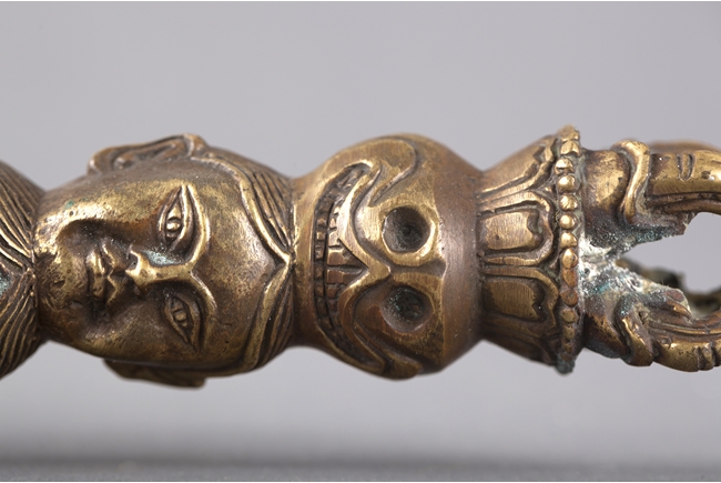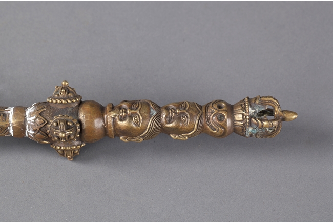 The beautiful ceremonial clubs are indented with intricate patterns all around with three head figures on the hilt.