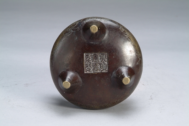 A CHINESE BRONZE TRIPOD CENSER    “大明宣德”款沖天耳三足銅爐