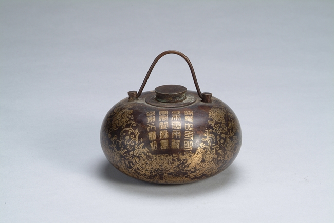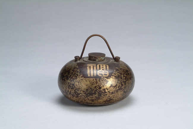The hand warmer features an ovoid shape, with small handles allowing easy lift; Fortune character, patterns, and a poem all on the exterior; four characters mark.