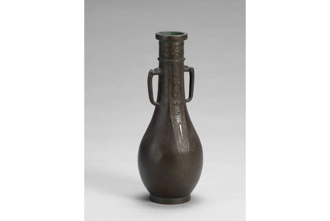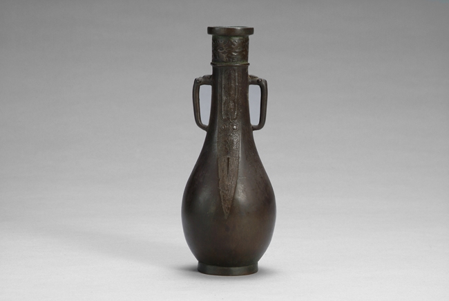 A JAPANESE BRONZE VASE 日本雙耳銅瓶,有款