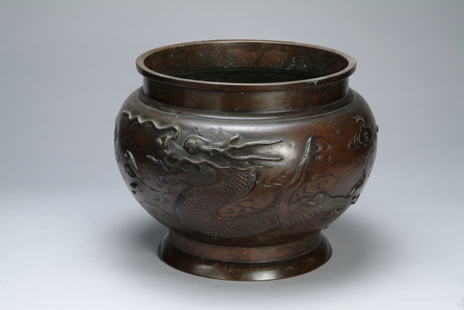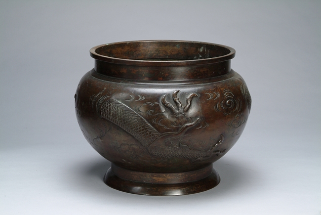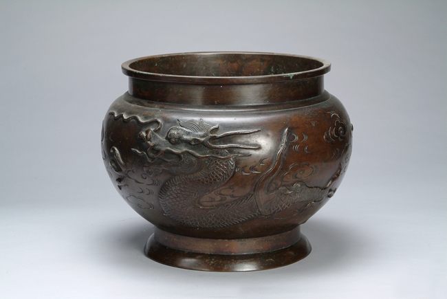 Exterior depicts a carved dragon flying freely through the clouds with a portion of the body being hidden.