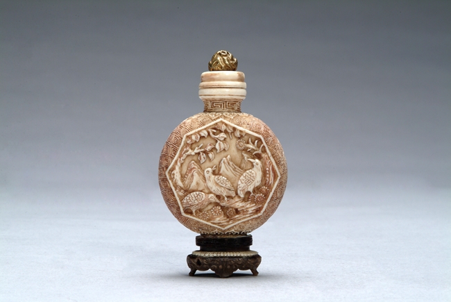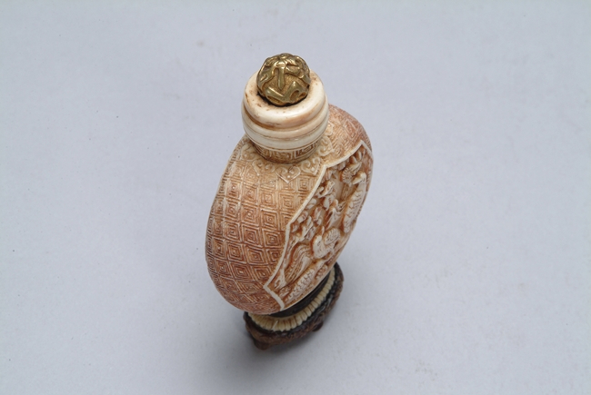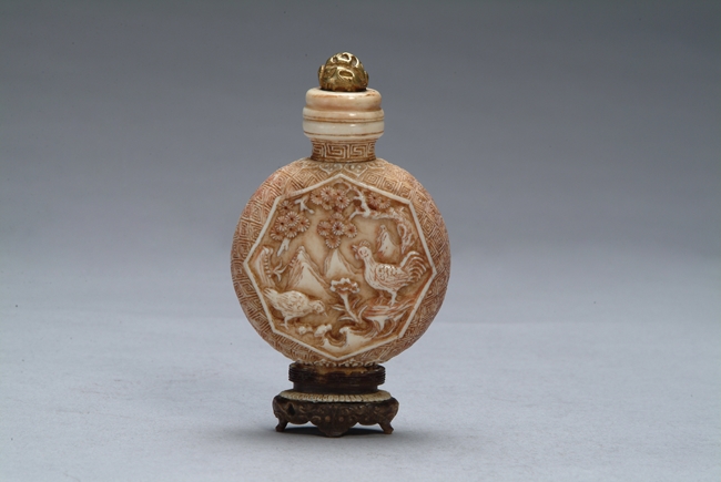 A CHINESE IVORY SNUFF BOTTLE 象牙雕花鳥鼻煙壺