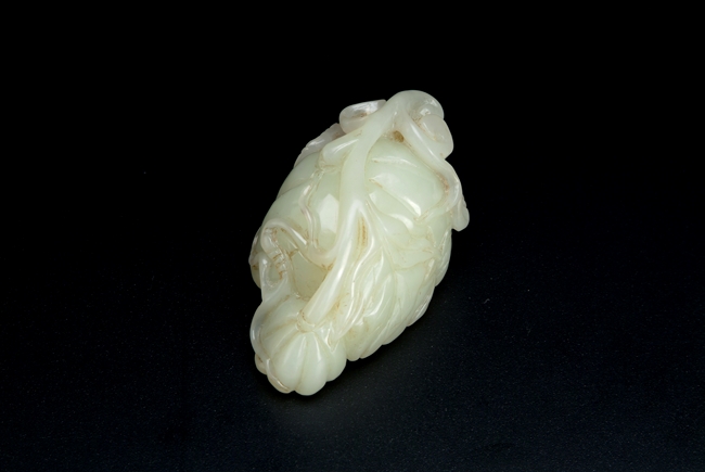 A CHINESE CARVED JADE "LOTUS" ORNAMENT 玉雕蓮花墜
