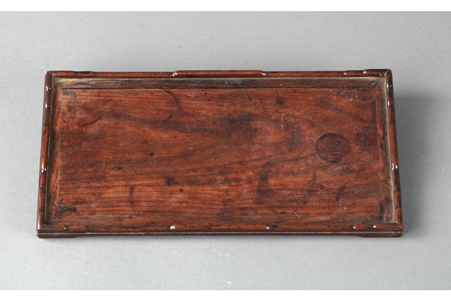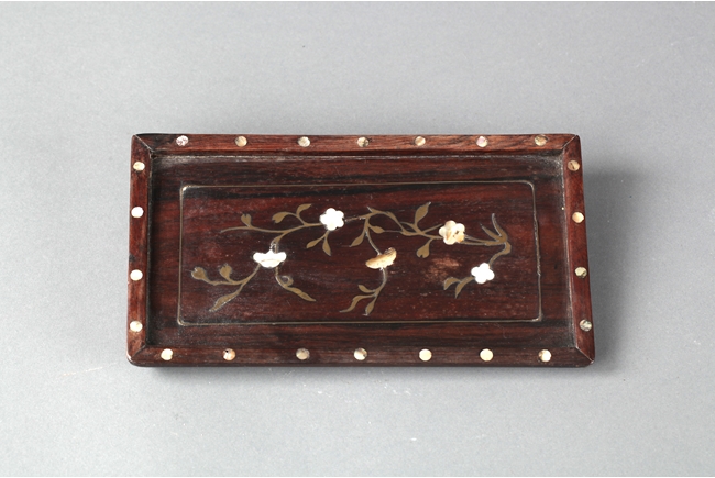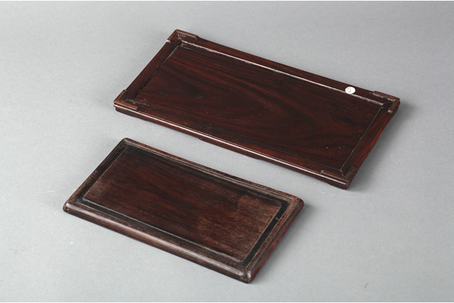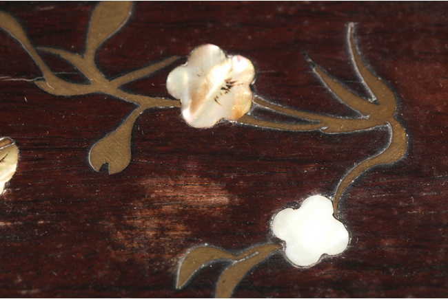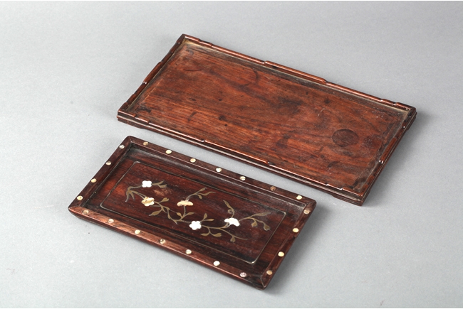 A Chinese Huanghuali wood rectangular stand with mother of pearl ornaments, and a Chinese Huanghuali wood rectangular stand