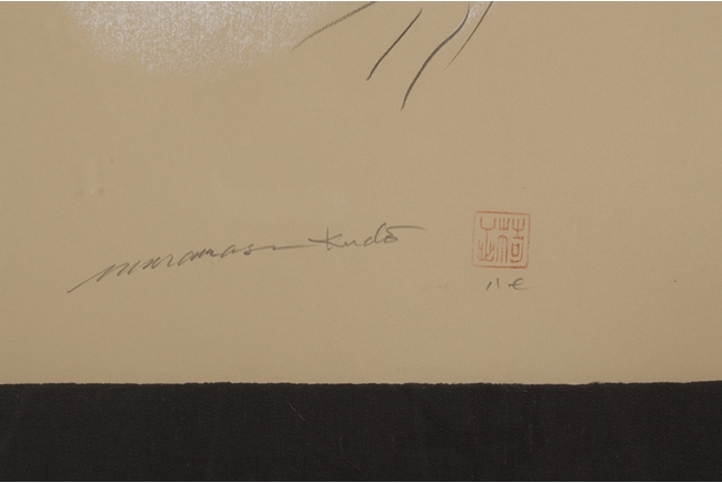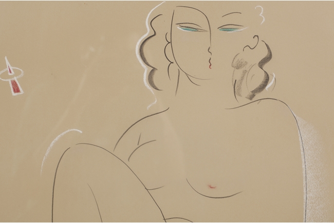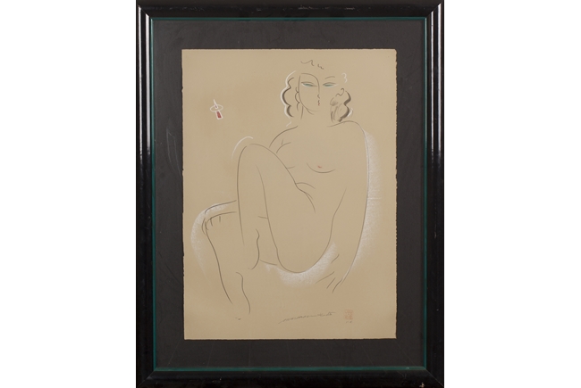 A sketch of a bare lady drawn in a slightly abstract way. It bears artist signature following with a seal on the bottom.