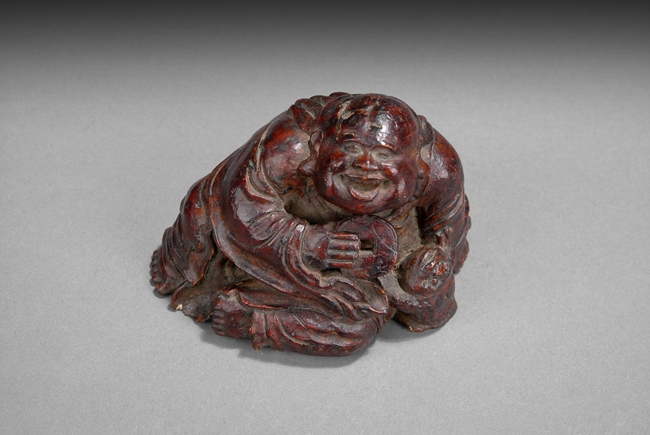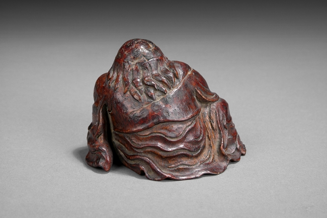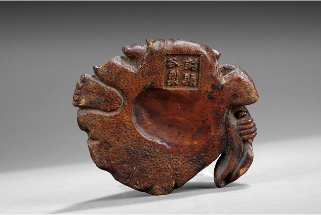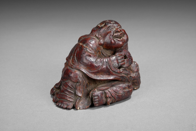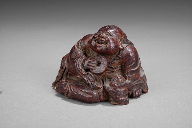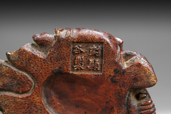 The group is well carved as the immortal Liu Hai wearing loosely draped robes seated sideways. With his left hand supporting his weight, his right hand holding a Chinese coin, tempting his three legged toad on the side. Four characters "FENGYINGGU" mark on the bottom.