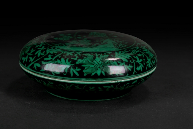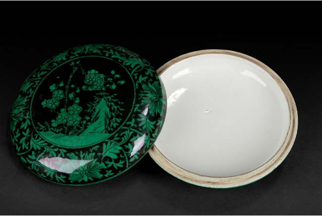 The centers of the paste box depict a scene of blooming flowers in the garden setting. It is bordered with contiguous flowers and foliage patterns. The base was glazed in white color and left unmarked. Qing Dynasty period.