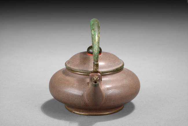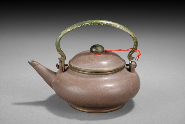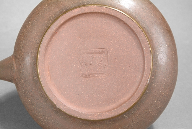 Of flattened ovoid globular form, the teapot stands on round foot, with cone shaped pouring mouth, and exceptionally smooth exterior. Mark on the bottom. Late Qing Dynasty period