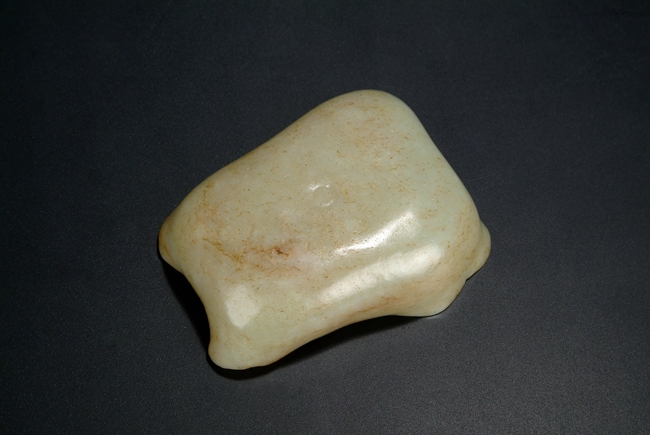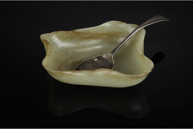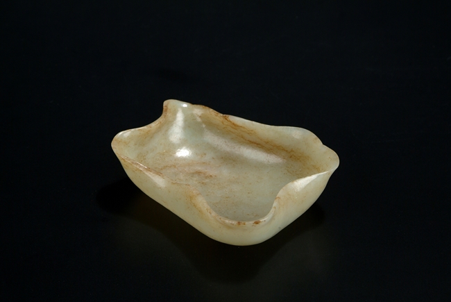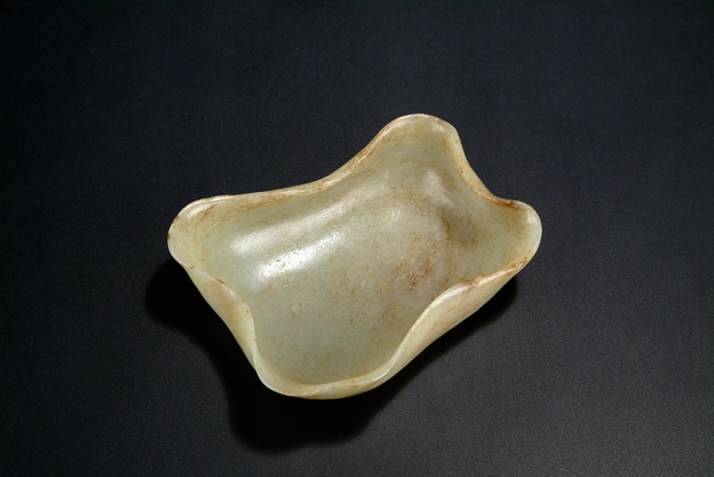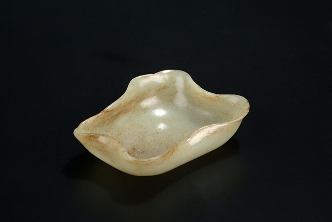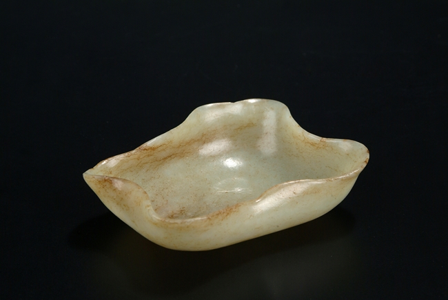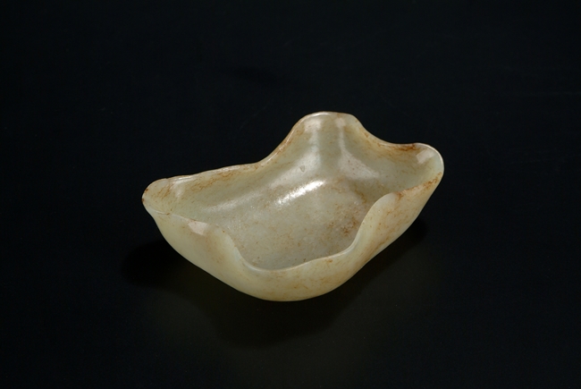 Of folded leaf shape, the washer has grayish-white tone with russet, and smooth surface. Qing Dynasty period.