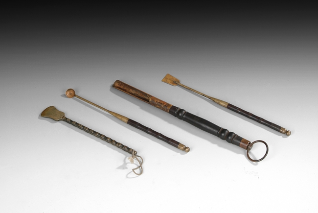 A SET OF FOUR BRONZE OPIUM IMPLEMENTS    十八/十九世紀 鴉片工具四件