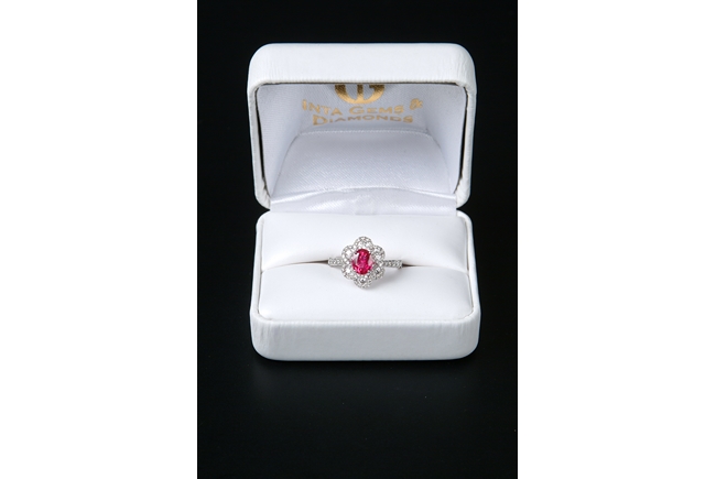 - Dimension: Ruby Weight: 1.09 carats, Diamonds Weight: 0.58 carats