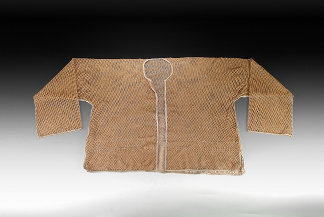 This rare vest was constructed of wheat straw strands in a cross hatched pattern. The edges were finished with cloth trim. Qing Dynasty period.