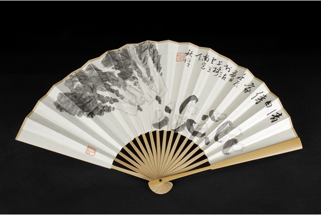Fan leaf painted with a couple Chinese cabbages, along with a few mushrooms, with calligraphy and artist mark on top, and another artist mark on left side.