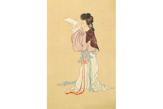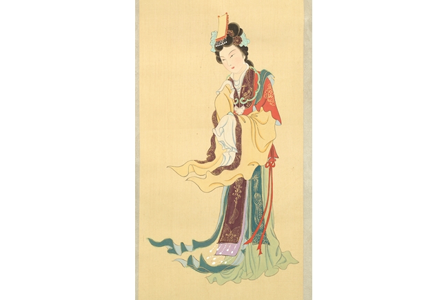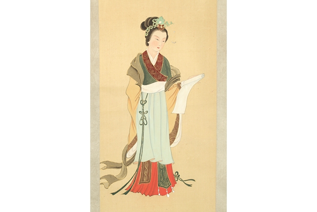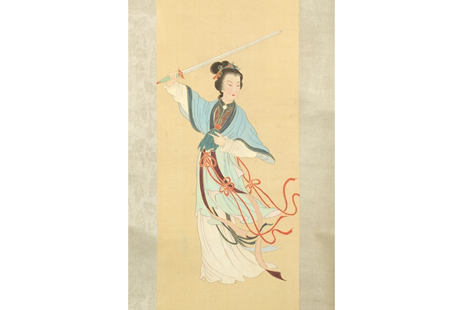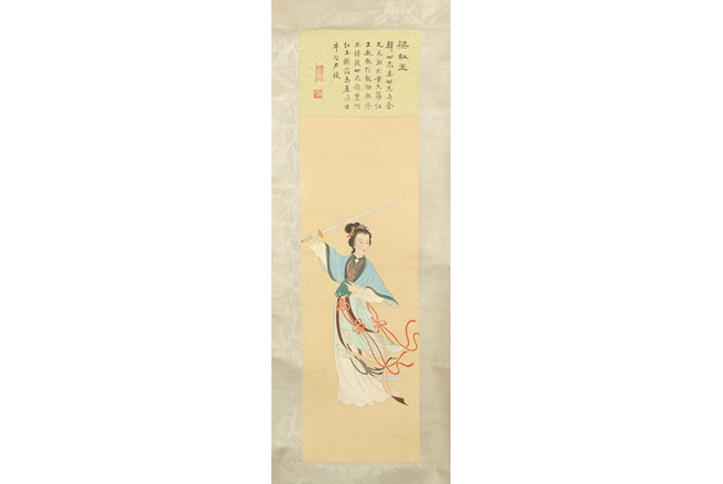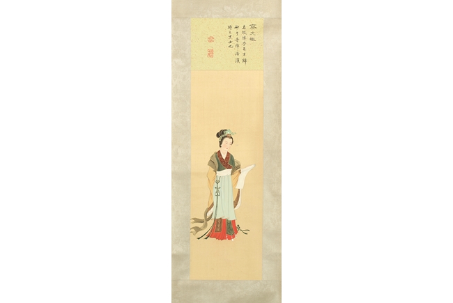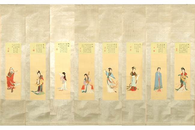 The silk paintings depict eight famous ladies from the Chinese history, each known for different reasons. All paintings have the lady in front of yellow background, the lady's name, description, and artist mark on the top. Republic period.