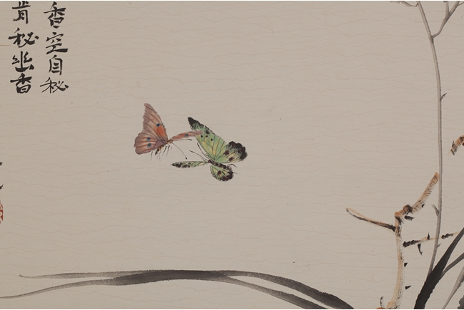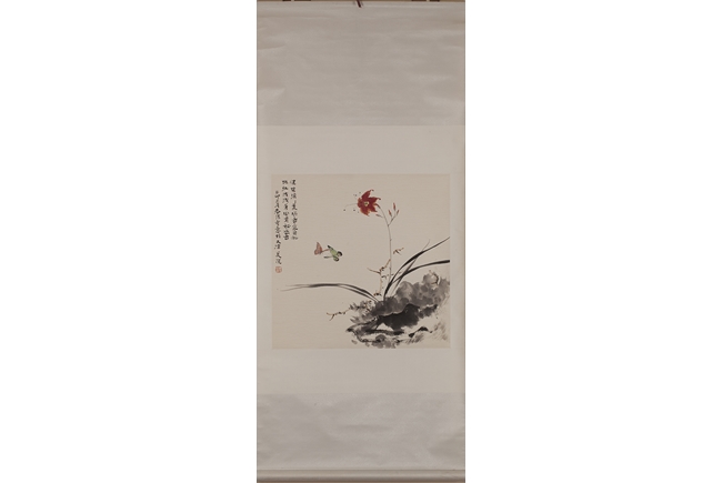 AN INK PAINTING OF LILY FLOWERS AND BUTTERFLIES    花卉蝴蝶墨水畫