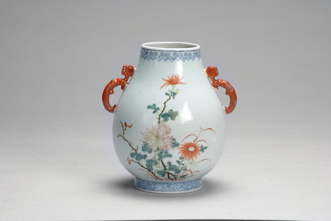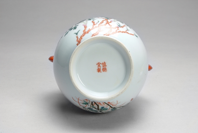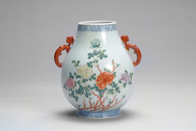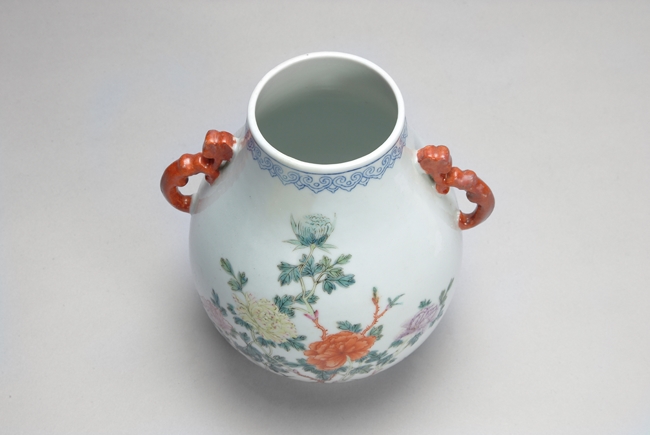 A CHINESE FAMILLE-ROSE "FLOWERS" JAR 粉彩花卉紋靈芝耳尊,“慎德堂制”款