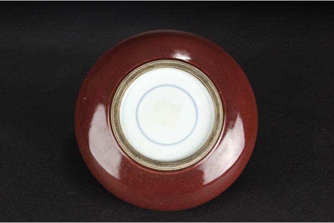 A RED GLAZED BRUSH WASHER 紅釉筆洗一隻