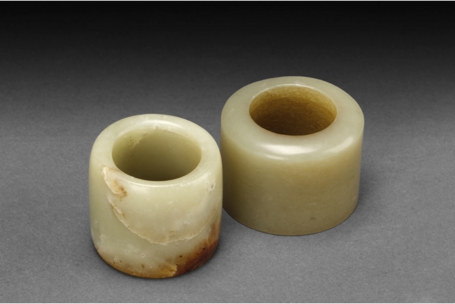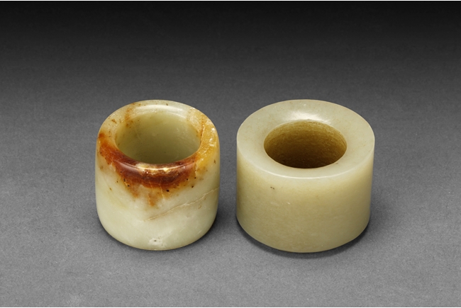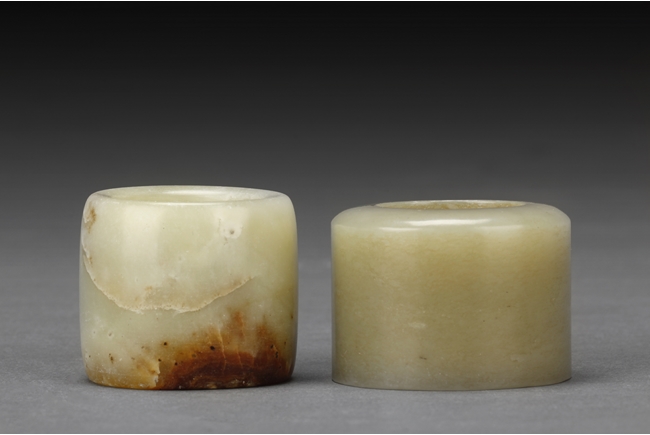Both rings of cylindrical shape, showing natural colors and patterns. One ring with slight russet.