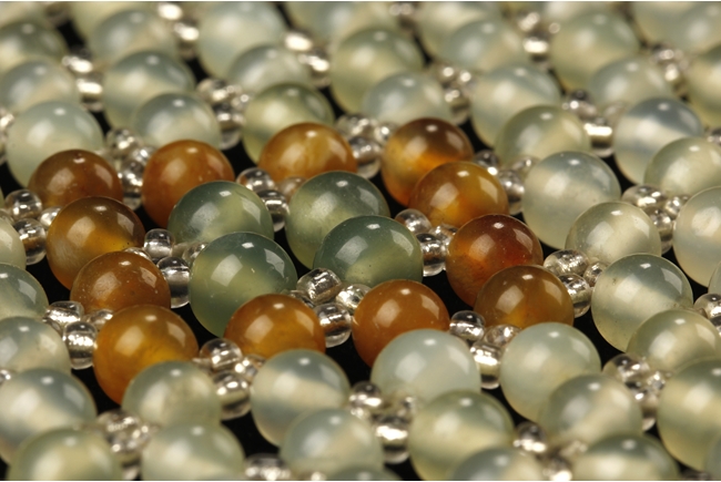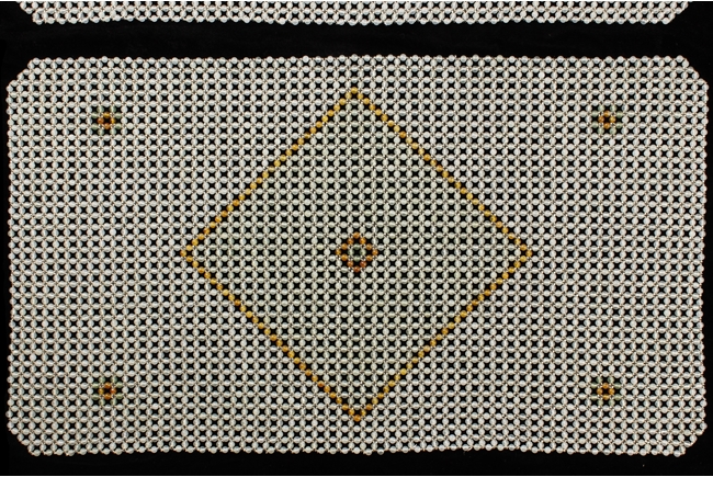 In rectangular shape, the pillow mats beaded with round jade stones, combined together in square shape, cleverly designed utilizing different colored beads to form rectangular shapes.
