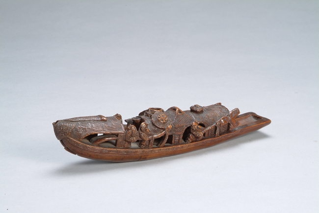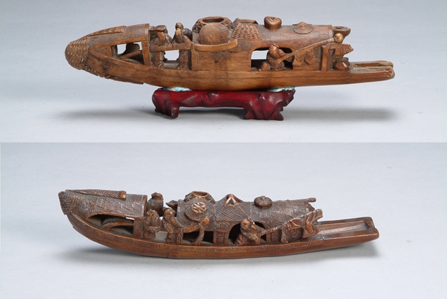 TWO BAMBOO CARVED BOATS 竹雕民船(兩個)