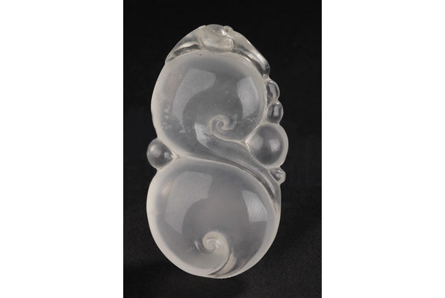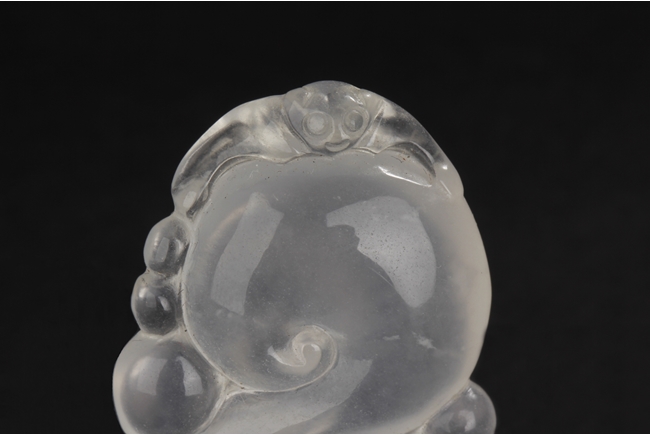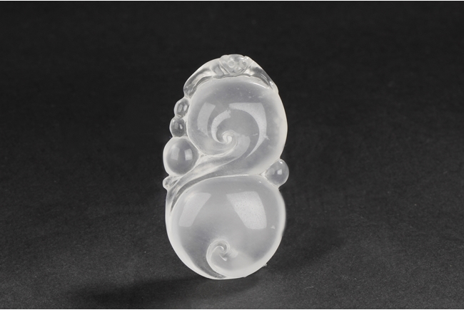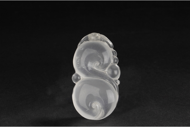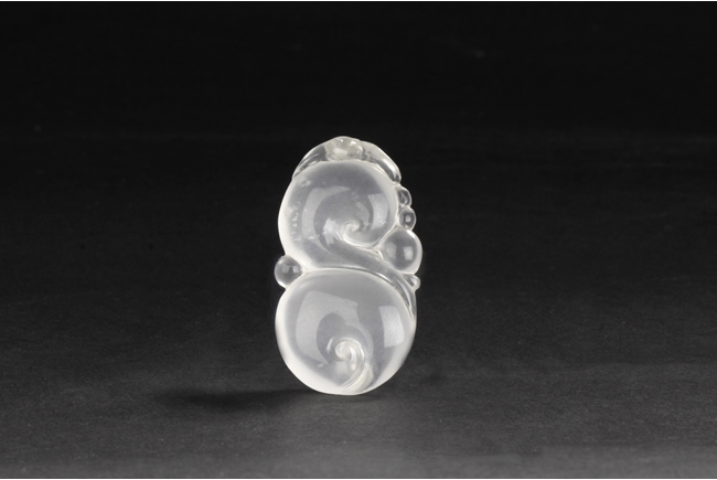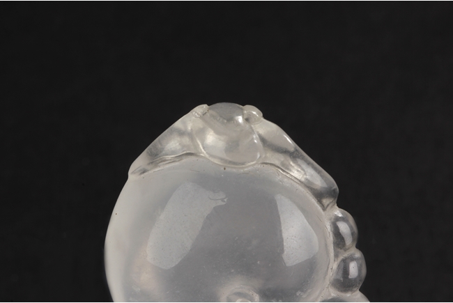 The pendant of irregular "8" shape, with a bat resting on the top, spreading its wings, the quartz with good transparency.