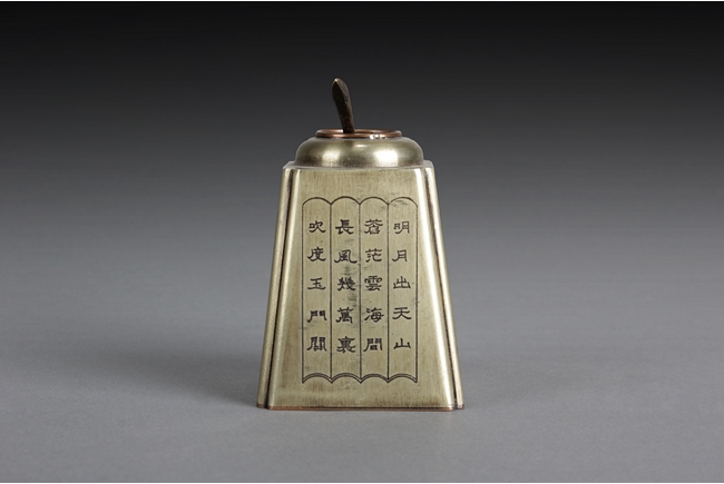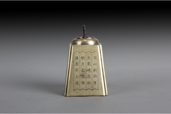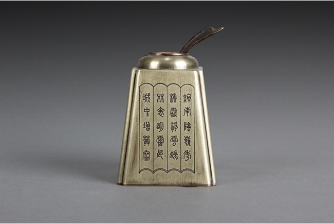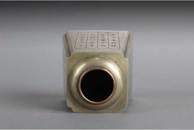 Of long trapezoid form, the receptacle inscribed with four Chinese poems, one on each side, with different fonts. Bottom bears three character "Wen Chang Ge" mark.