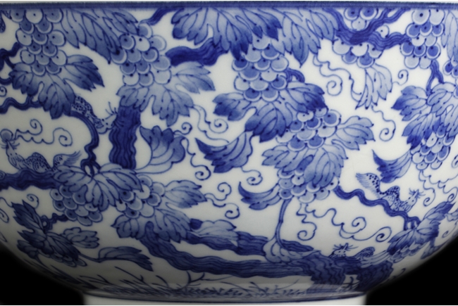 The exterior decorated with trees bearing ripe grapes, with a few mice on branches, eating grapes. The scene symbolizes fertility. Bottom bears six character "QIANLONG" mark.