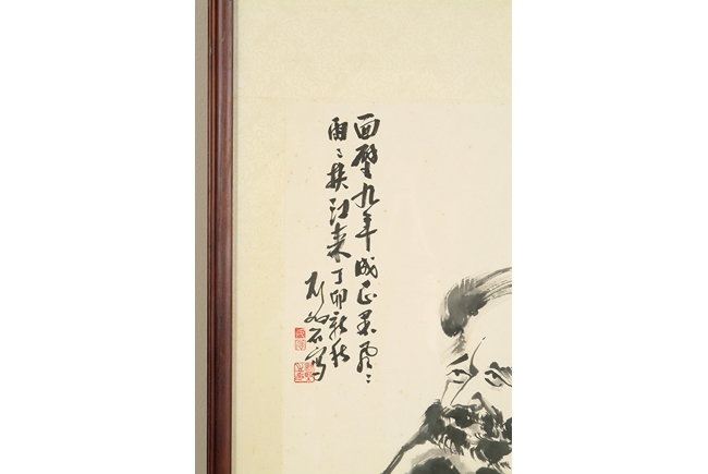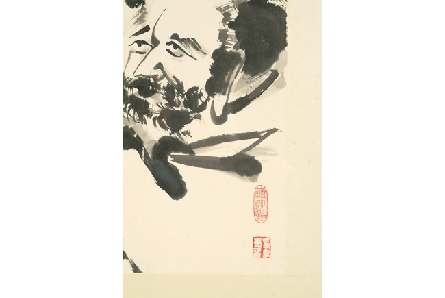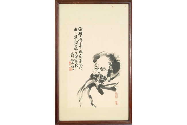 This painting depicts a portrait of a bearded man. A colophon of Chinese character on the left edge, attributes painting to "LIU JIAN".