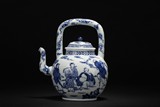 A BLUE AND WHITE 'EIGHT IMMORTALS' TEAPOT