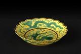 A YELLOW GROUND GREEN ENAMELED 'DRAGON' DISH