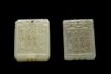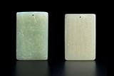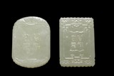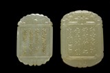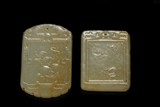 TWO CHINESE CARVED JADE RECTANGULAR PENDANTS
