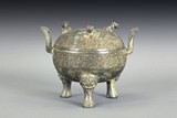 A BRONZE RITUAL TRIPOD VESSEL AND COVER