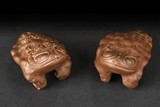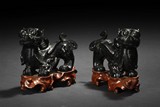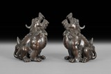 A PAIR OF BRONZE MYTHICAL BEAST ORNAMENTS