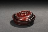 A ZITAN WOOD CARVED ROUND BOX WITH COVER