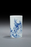 A SHOUSHAN SOAPSTONE CARVED BRUSH POT