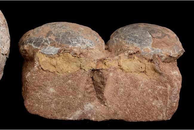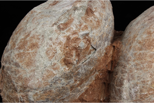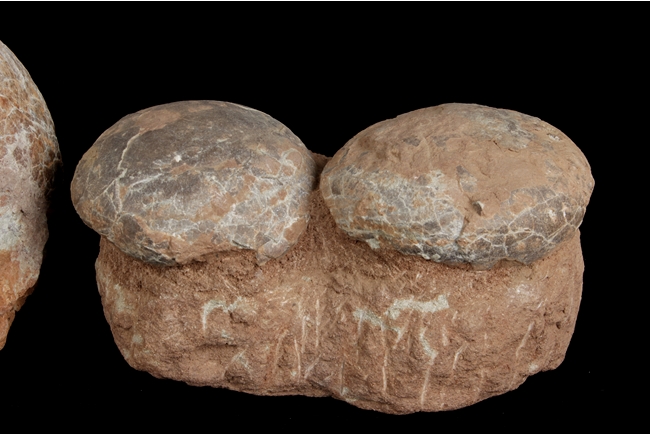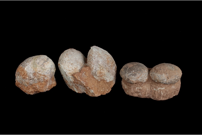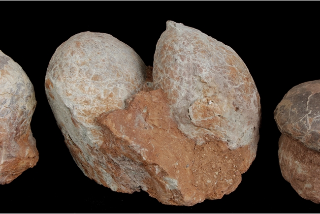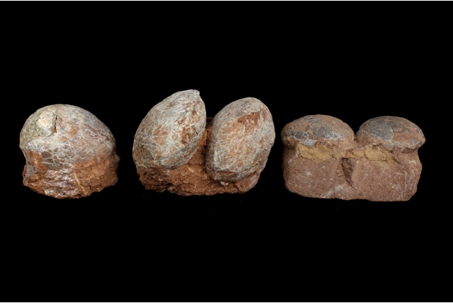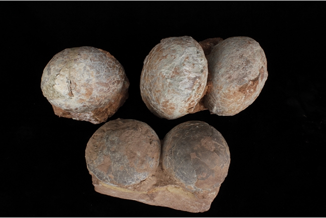 The fossilized eggs were all of oval shape, separated into three groups of one, two, and two eggs, some slightly larger. Jurassic period.