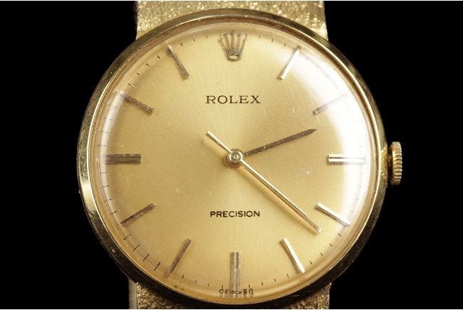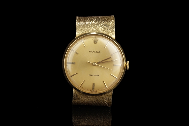 A VINTAGE ROLEX PRECISION 18K GOLD WATCH WITH 18K YELLOW GOLD BAND 勞力士K金錶