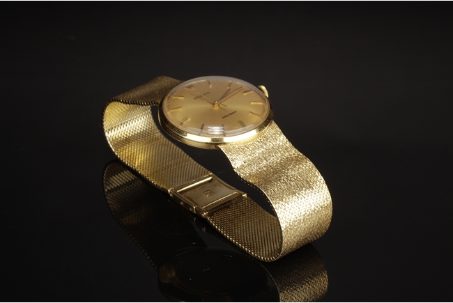 The vintage mechanical Rolex watch's case was made of 18k gold, with 18k gold watch band.