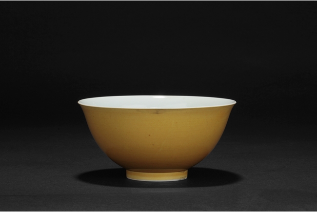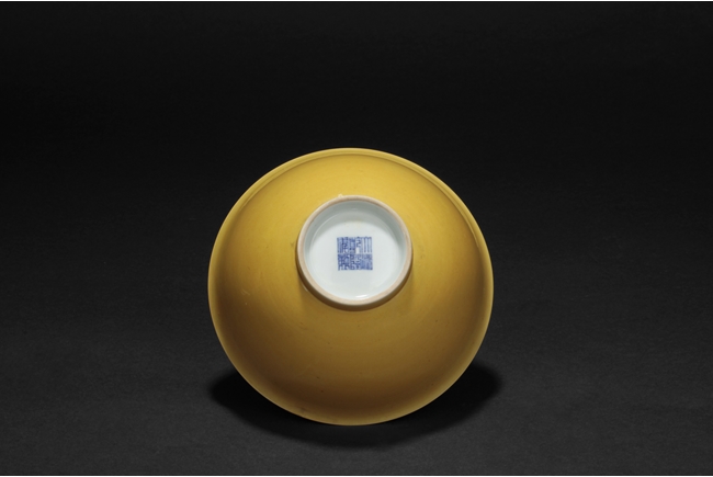 Well potted with deep rounded sides supported on a short straight foot and rising to a slightly flared rim, applied overall with a rich yellow glaze, bottom bears six character "QIANLONG" mark. Qing Dynasty period.