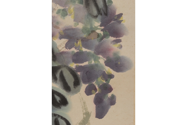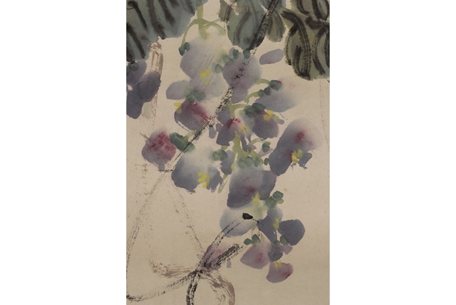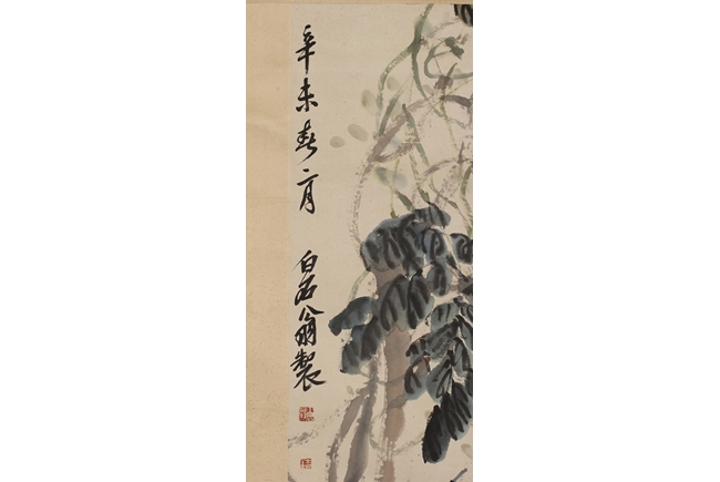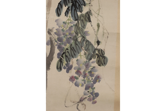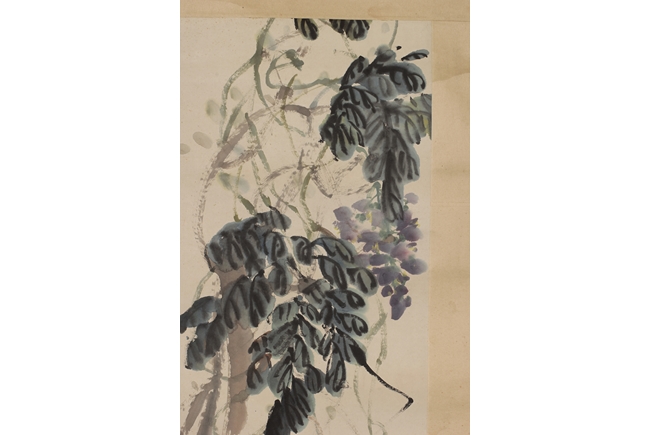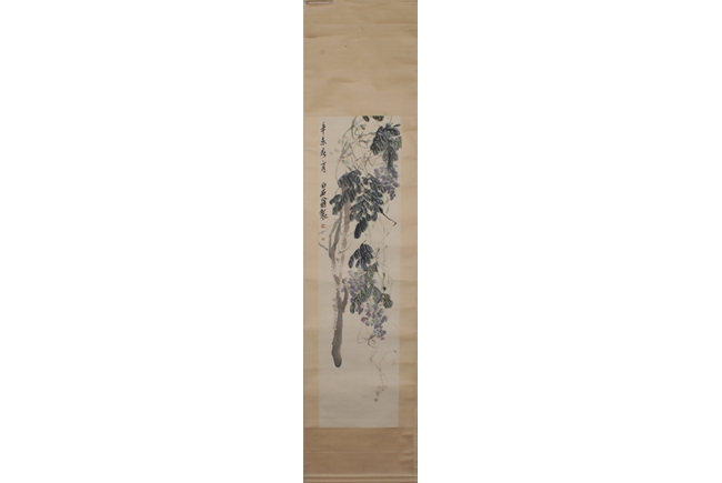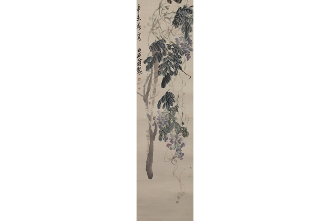 Hanging scroll, ink and color on paper, depicts purple vines and trees, artist signature and mark 'Qi Baishi', dated 1931. Provenance: Sotheby's New York, November 26, 1990, lot 180