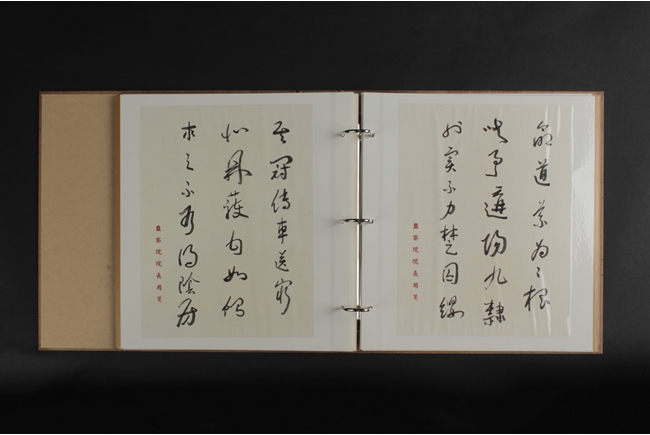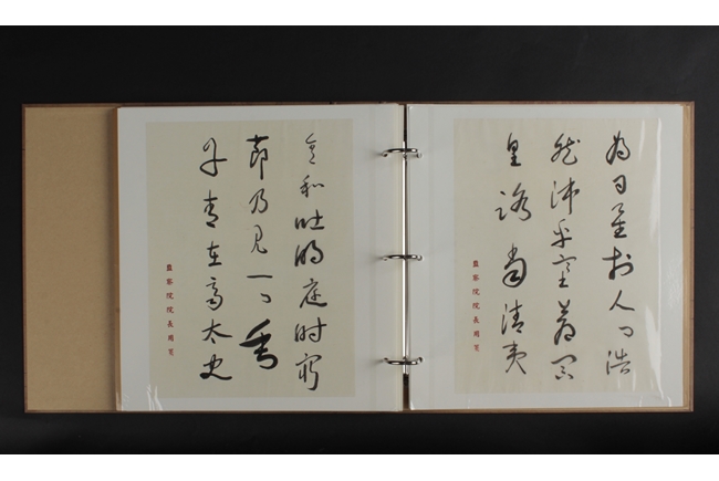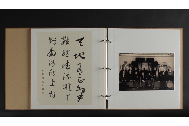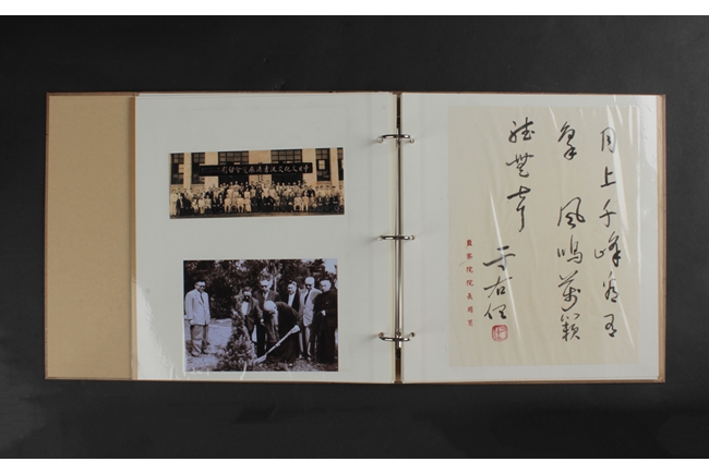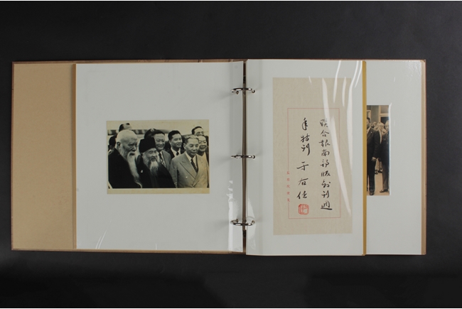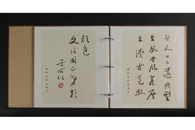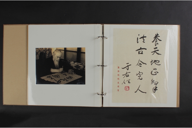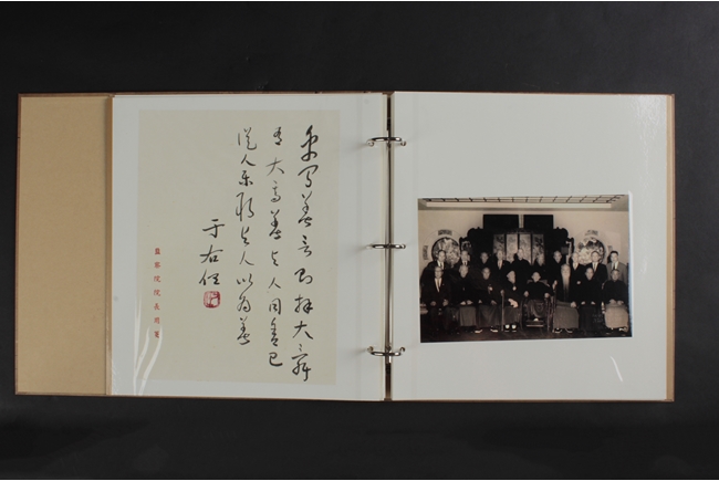 The group includes a photo album of twenty-eight (28) manuscripts and twelve (12) photos, and a separately framed manuscript, all by Yu Youren, written on Jiancha Yuan issued paper, some with seal stamp.