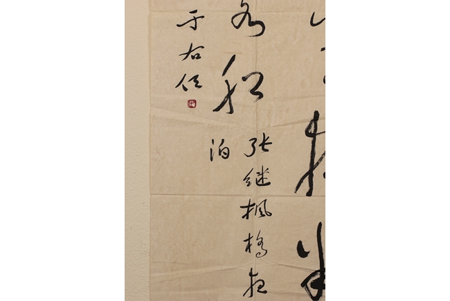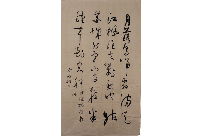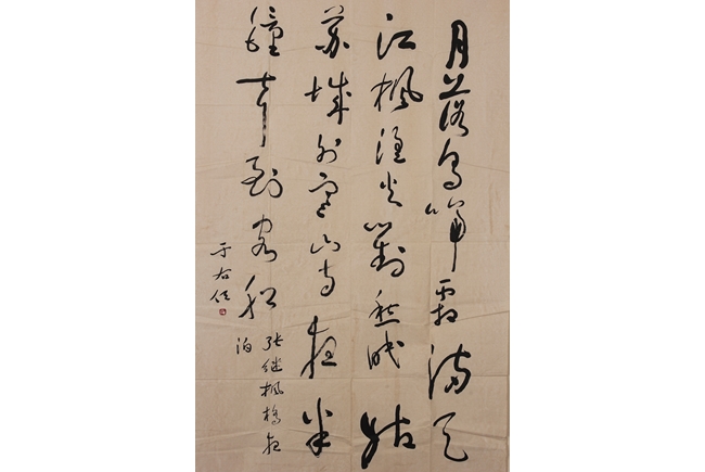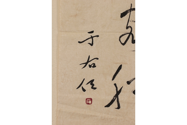 A poem calligraphy written by Yu Youren, four verses, artist signature and mark on the left side, unframed.