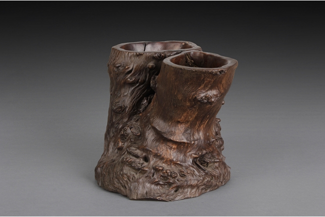 Of naturalistic root form, the ironwood root has two trunks hollowed into brush pots while preserving natural color, grain, and shape. 19th century.