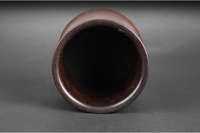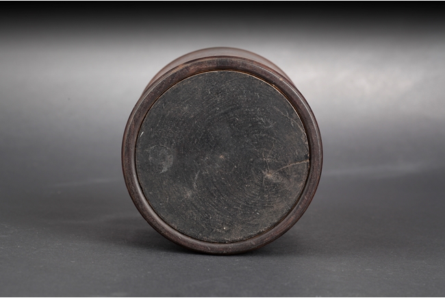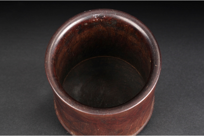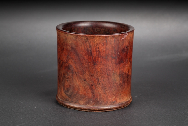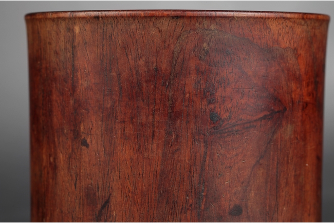 Of cylindrical form, the brush pot with natural Huanghuali wood color and grain, the surfaces smooth. Qing Dynasty period.