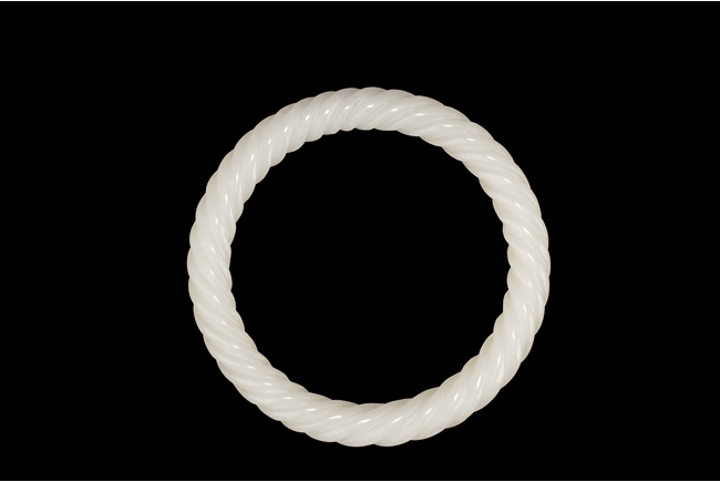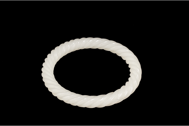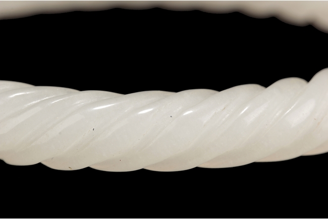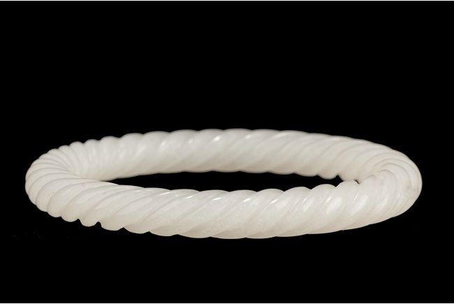 A WHITE JADE SPIRAL BANGLE 十九世紀 白玉雕麻花手鐲