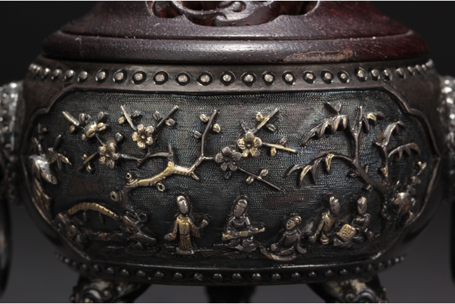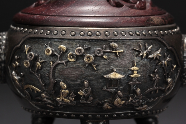 此香爐做工精細,人物雕刻、樓閣、小橋流水、植物栩栩如生,為皇家所用。