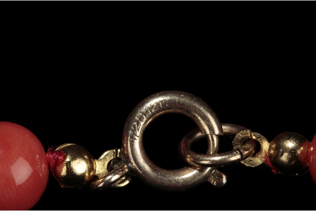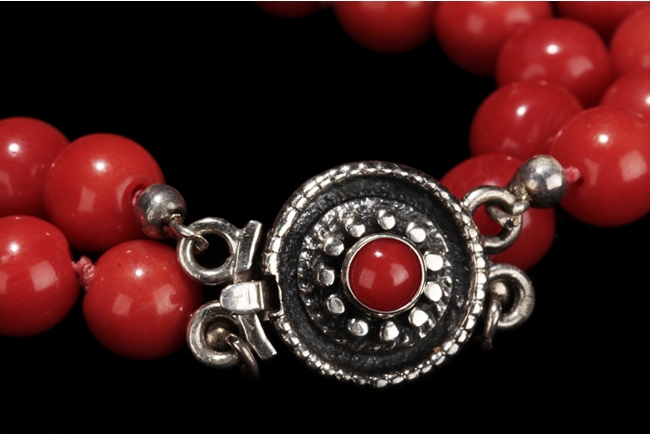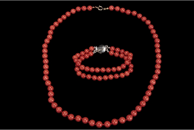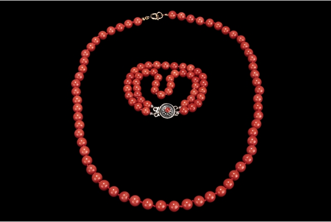 The red coral bead necklace with total weight 40 grams, the double strand bead red coral bracelet with total weight 24 grams.
