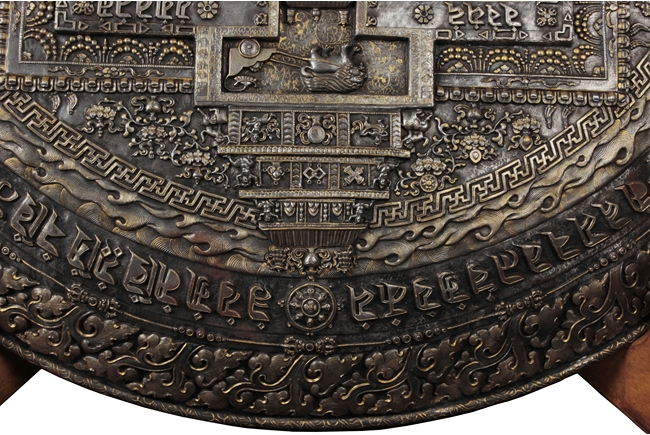 此壇城做工精細,內容豐富,器形大,早前為大廟所藏。在目前有據可查的密宗壇城中,像如此大及精緻並流傳在外的壇城極為少見。此巨大壇城對於佛教界、佛教研究機構、佛教博物館以及佛像的收藏者都是不可多得的。背面為銅制。此密宗壇城為台灣八畝園早期收藏。