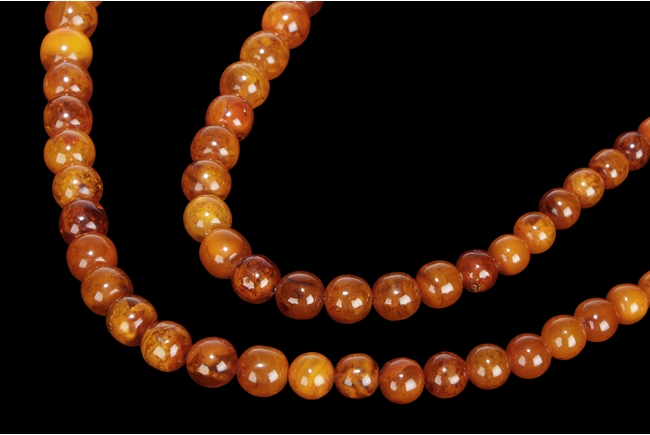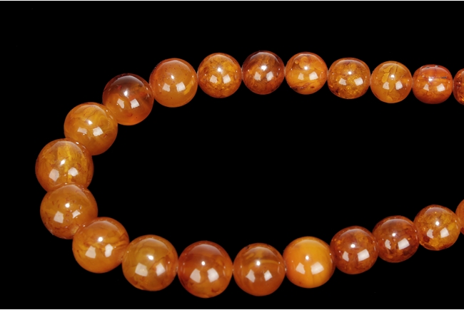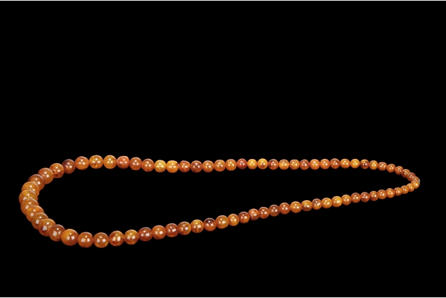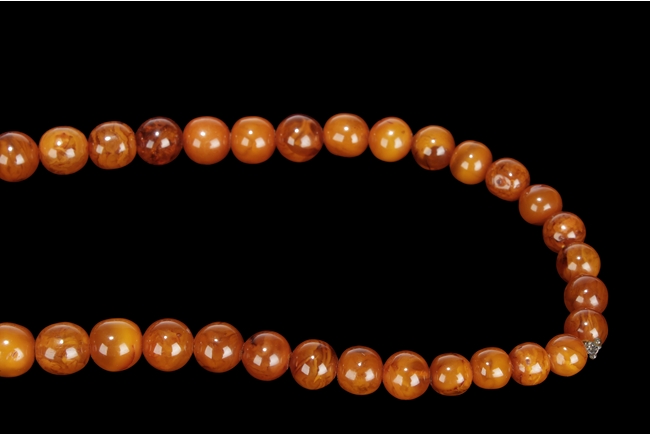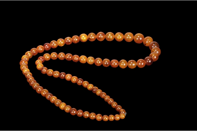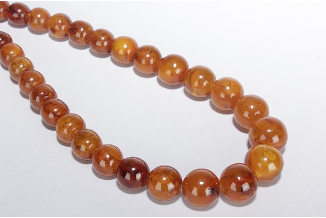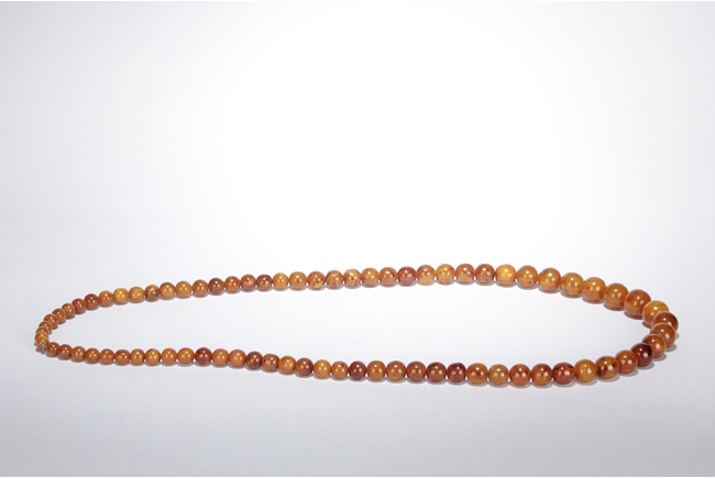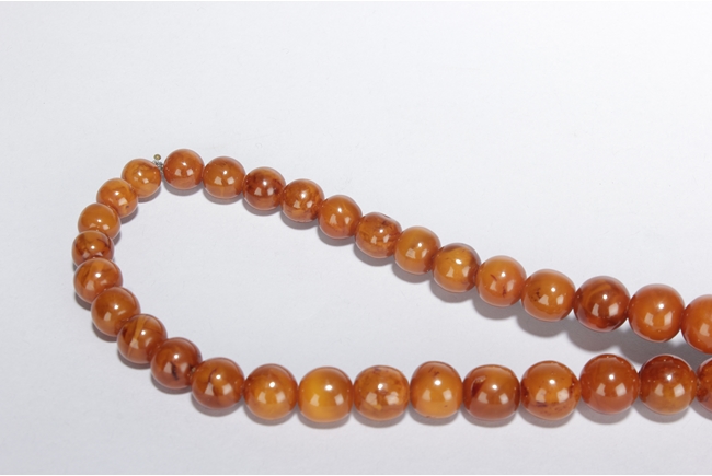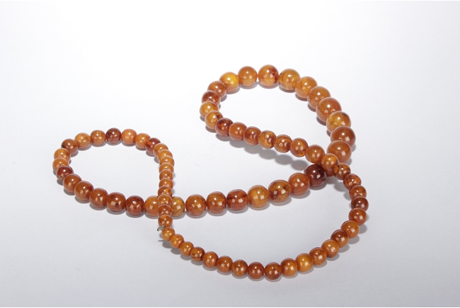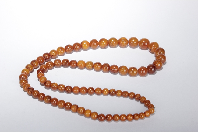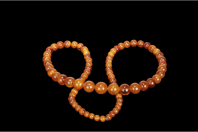 The strand of amber prayer beads consists of 80 gradual amber beads, ranging from 11mm in diameter to 22.7mm, with total weight of 168 grams; of alluring brown color with translucency showing the inside. Qing Dynasty period.