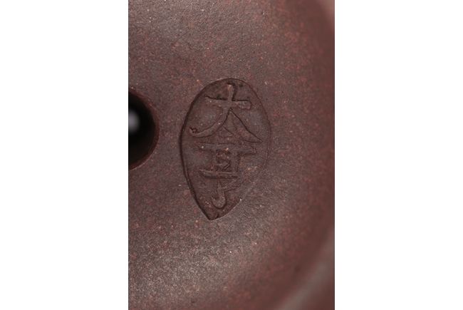 此壺壺身、壺蓋、鈕宛如三球層疊,渾如天成,口沿緊密,週整,符合邵大亨(1796-1850年)多以光素器見長之,作品多簡潔莊重,蓋內典型的瓜子形“大亨”款,大亨壺在清代有"一壺千金幾不可得"之譽。